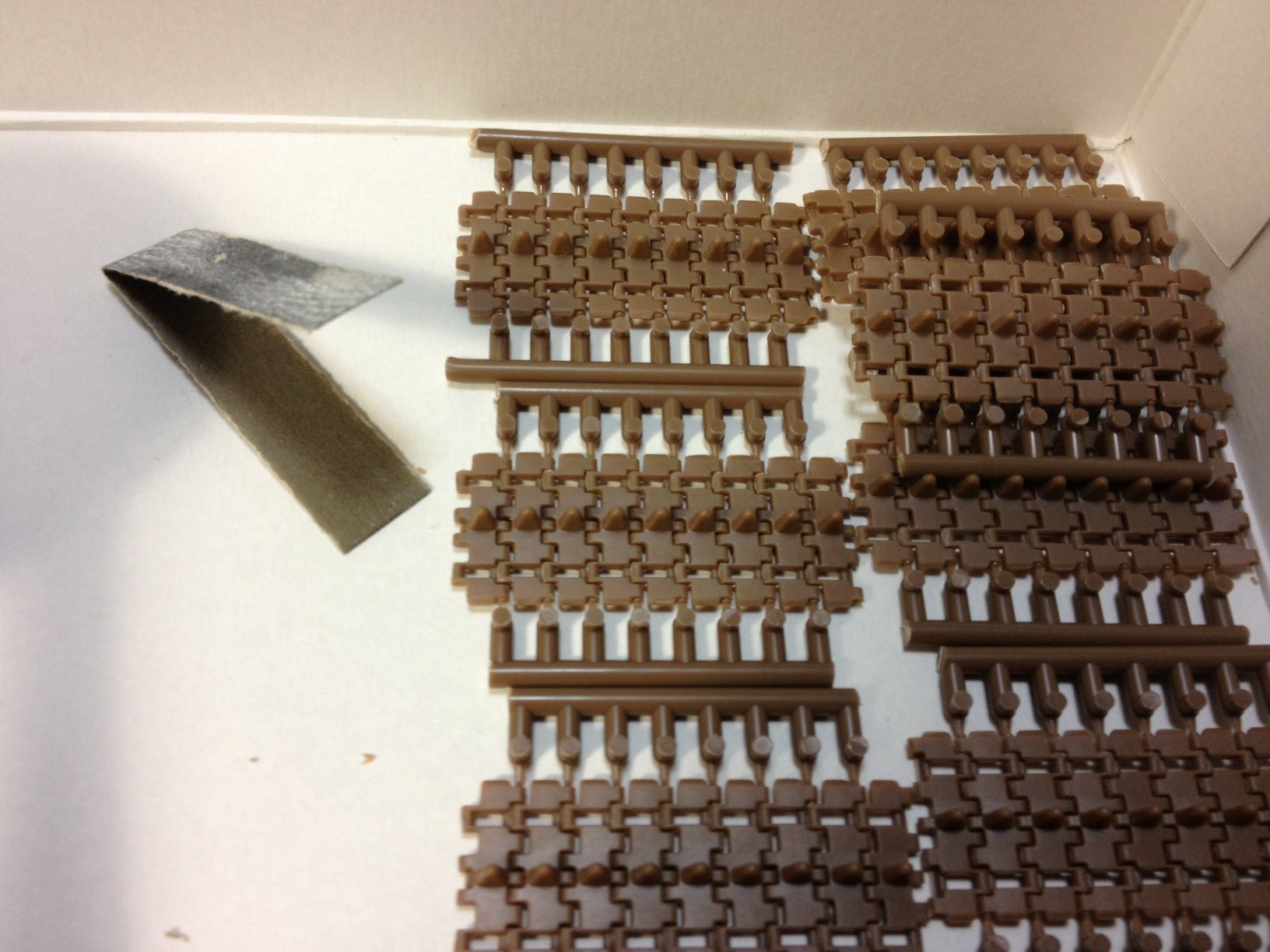 ランナーに付いたままのピンがこの履帯の間隔にあわせてあるので