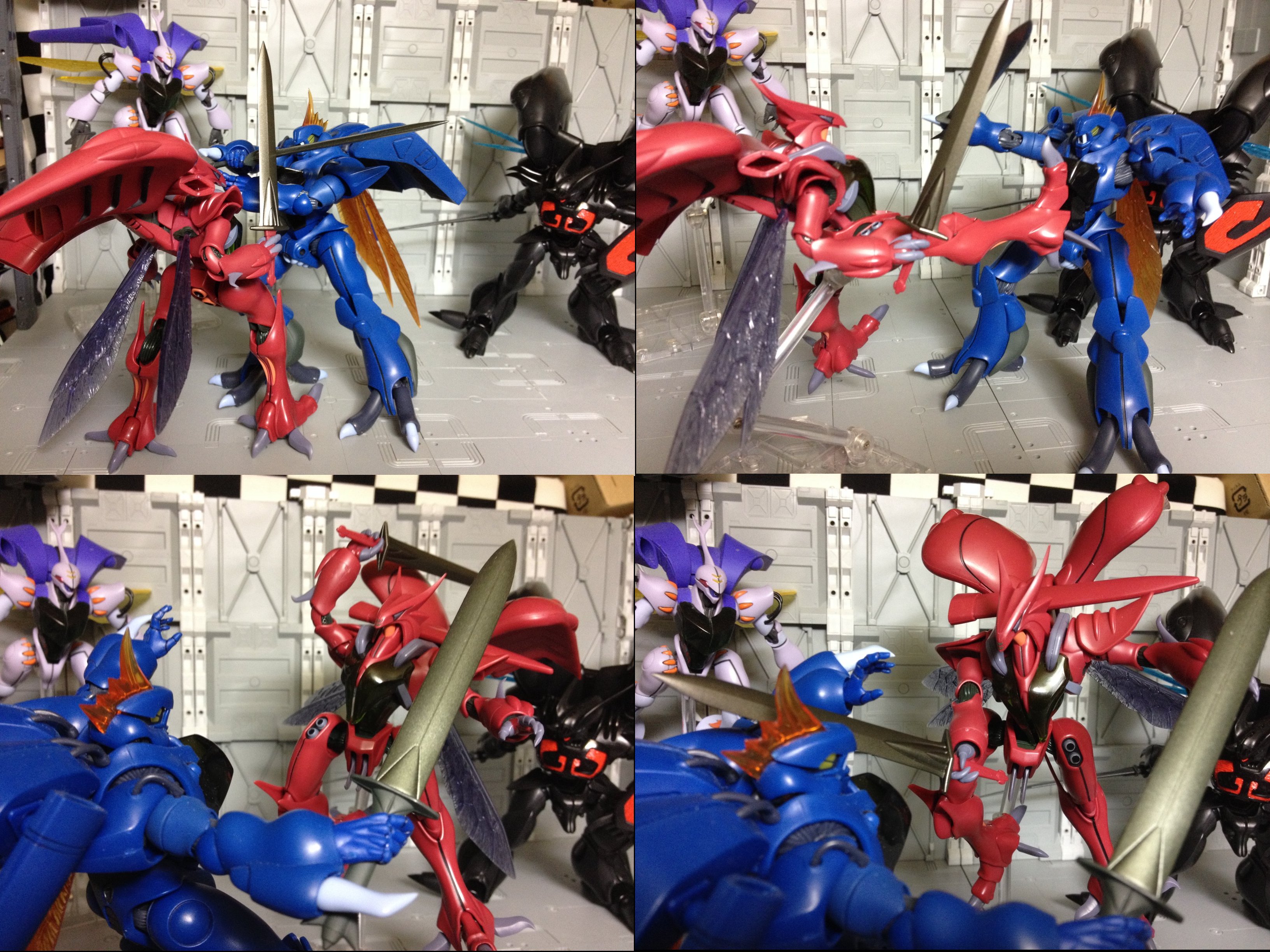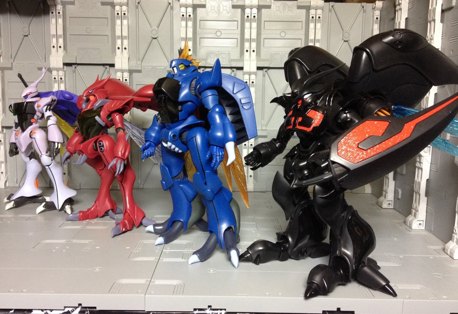 現在までのオーラバトラー一揃え。ビルバインは羽根一枚紛失してるから